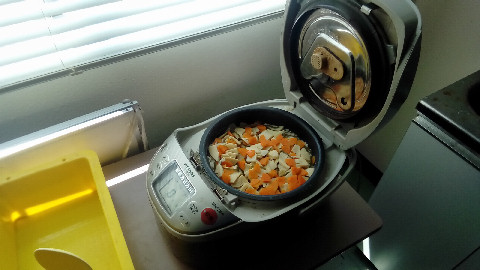 例年もらってきたタケノコを使って研究室でタケノコご飯を炊き、昼食会をやってます。 残念ながら昨年・一昨年はは新型コロナ騒ぎで集まっての会食はNG、ご飯だけ炊いて学生がよそっていって各自食べることに。 今年はだいぶ下火になってきたのですが、安全策をとって去年と同じスタイルです。 |