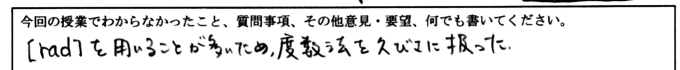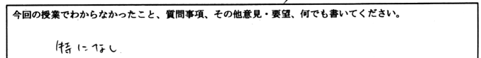 提出してもらったミニテストに書かれていた質問・要望に対する回答です。