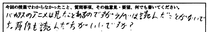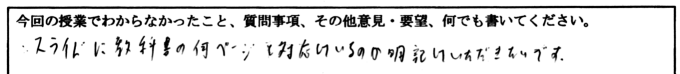 提出してもらったミニテストに書かれていた質問・要望に対する回答です。