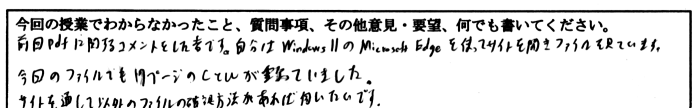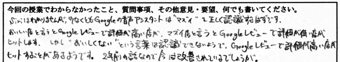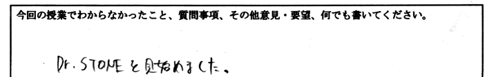 提出してもらったミニテストに書かれていた質問・要望に対する回答です。
