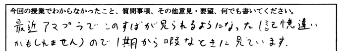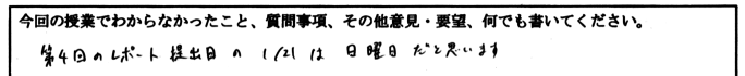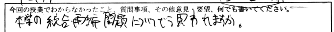 提出してもらったミニテストに書かれていた質問・要望に対する回答です。