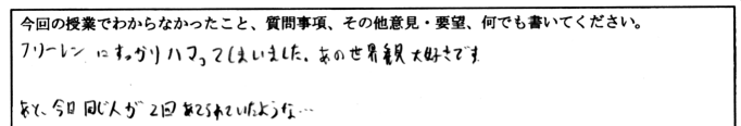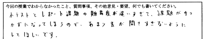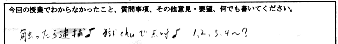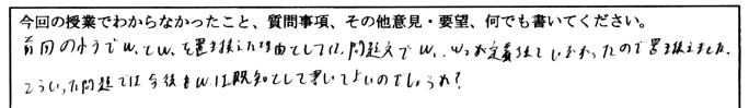 提出してもらったミニテストに書かれていた質問・要望に対する回答です。